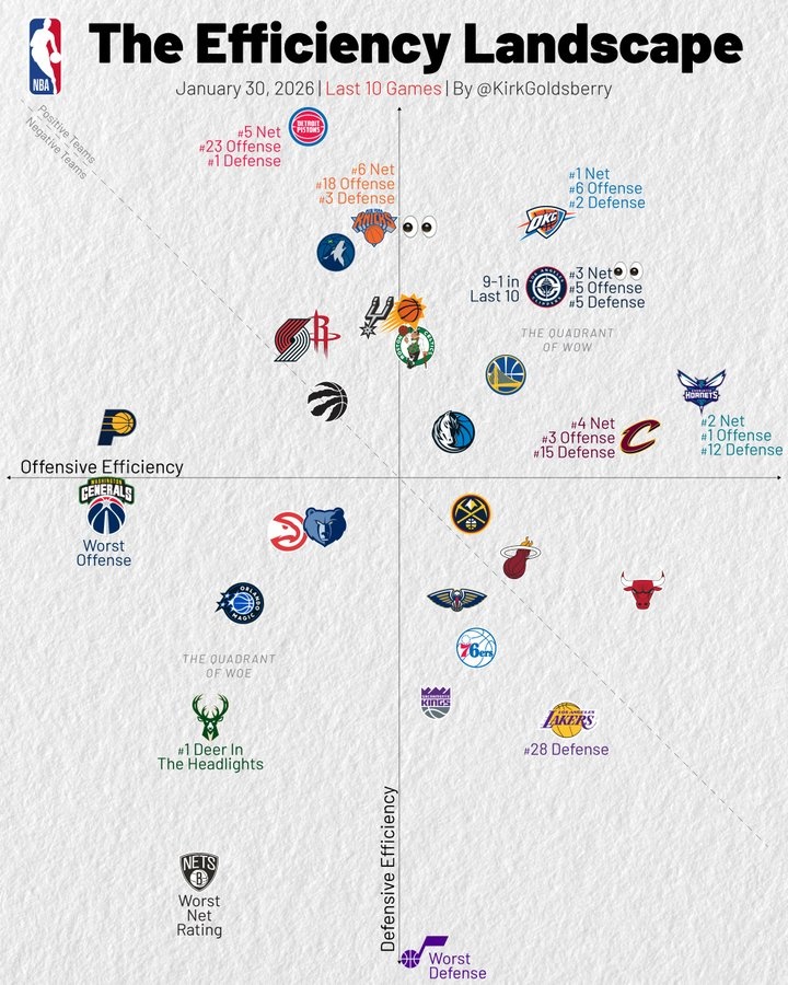 近10场攻防:快船攻防均第5净效率第3 黄蜂进攻第1 湖人防守第28