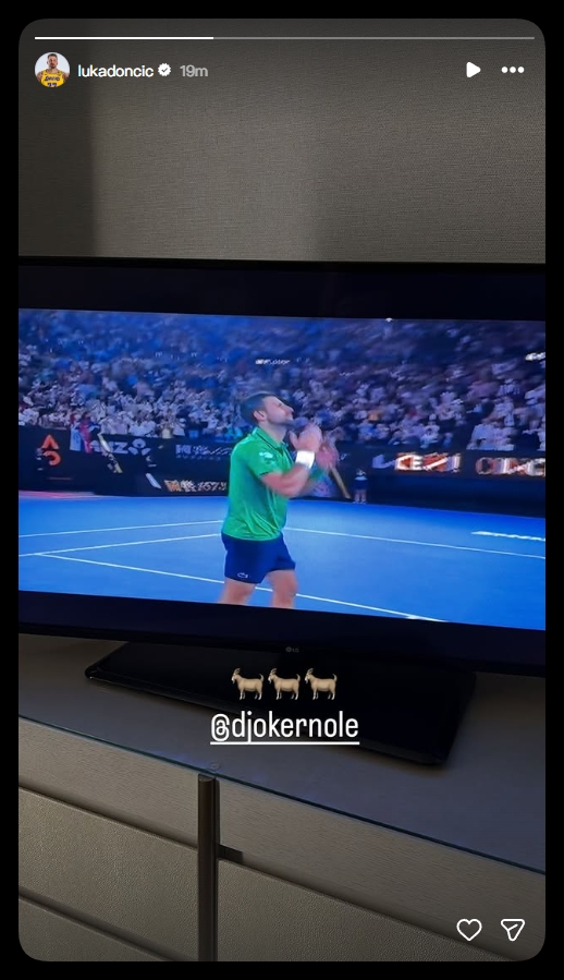 JRS直播吧01月30日讯澳网男单半决赛,4号种子德约科维奇五盘鏖战击败2号种子辛纳,重返澳网决赛。湖人球员东契奇更新社媒晒出了德约获胜的直播并写道:“...
