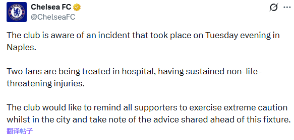 俱乐部已获悉周二晚间在那不勒斯发生的一起事件。