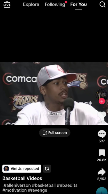 维尼修斯转发了一条关于NBA传奇球星阿伦-艾弗森采访的TikTok视频,视频中艾弗森表示:“我是MVP,却仍要为交易流言而担忧。我也是普通人,不可能事事都赢。”