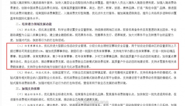《加快培育服务消费新增长点工作方案》于2026年1月25日印发实施。其中进一步明确:“优化改进大型群众性活动安全管理,分级分类合理核定赛场安全容量,用于划设治安缓冲区的容量原则上不超过赛场可用座位数的...