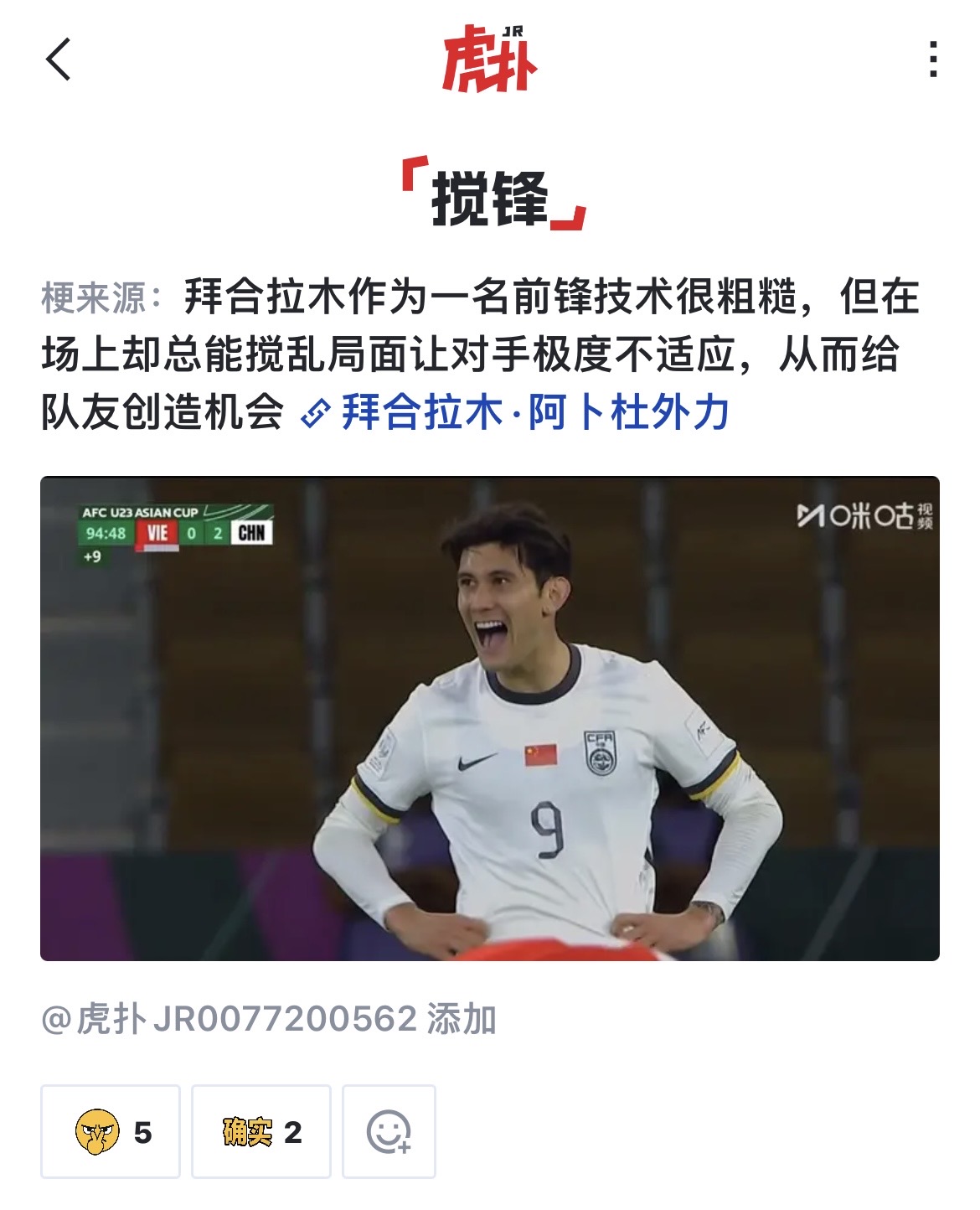 本届比赛中,JRS直播吧JRs看到国足小伙子们如此优异的表现,也是创造出了许多梗,让我们看看本届亚洲杯网友们的造梗合集。